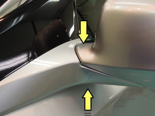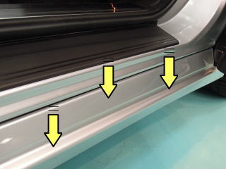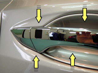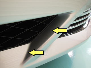 <細部まで入念なコーティング> ボンネット、ルーフ、ドア、トランクといった広い面のみならず 細かな入り組んだ部分や裏側、内側等、下の画像の黄色矢印のような部分まで 丁寧に塗り込み保護いたします |