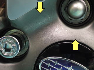 ![]() スバル車の悪しき伝統? どのホイールにも固着したグリス?が付着 |