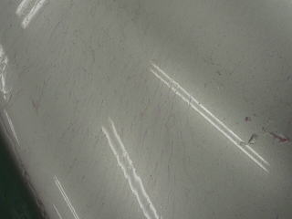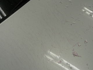 塗装の状態ですが、、登録後3年経っているとはいえ、まだまだ元気一杯 しかし、洗車後、見た目は洗車傷も少なく水はじきもしているのですが、 表面を手のひらで軽く撫でてみるとザアラザラ感がある状態 鉄粉除去剤にも無数の細かな反応があり、粘土で撫でるとザラザラした感触とともに鉄粉や汚れが付着 この汚れや鉄粉の上にWAXやコーティングを施しても、かえって塗装には悪影響があるかもしれません コーティング施工の前の、さらにさらに、磨きの前の鉄粉除去作業ですが、 改めてこういった下地処理の重要性を強く感じます |