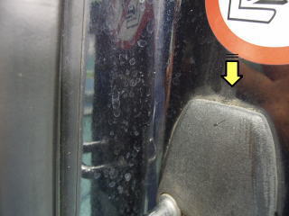 ![]() ドアサイド面も細かなシャンプー染みがビッシリ |