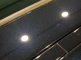 ![]() ![]() ボディ(塗装面)の各所や窓ガラス(サイド・リア)に貼られている各ステッカーにも注意して下地磨きに入ります 塗装の状態は、中程度の洗車傷と機械磨きによるバフ目(他店)、その上に細かなシャンプー染みが全体を覆ってる状態です 見たところバフ目と洗車傷が6:4でそこに細かなシャンプー染みが乗っている感じです ![]() シャンプー染みは、ドアヒンジまわりやトランク内側によりハッキリと白く焼きついた重度の痕跡が見られます シャンプーが濃すぎるか、すすぎ不足か、またはその両方かが原因ではないでしょうか? |