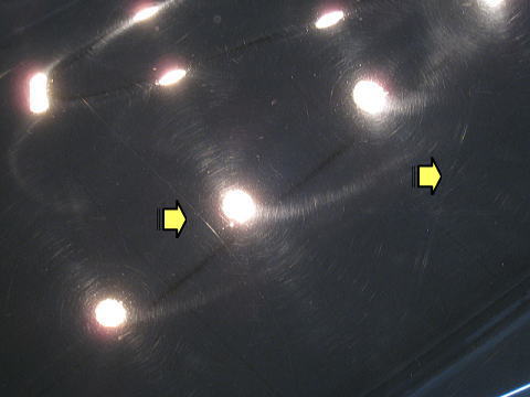 ![]() 洗車機と思われる激しい洗車傷に縦、横に走る深いスクラッチ傷 ![]() |