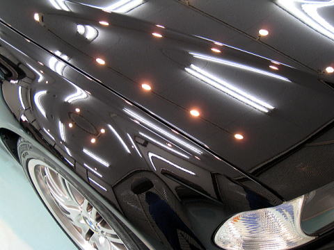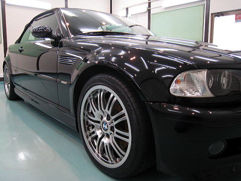 磨き完了後、、、 洗車、水切り乾燥、ガラスコーティング(Type−BP)、幌の撥水処理×4回 ガラス撥水処理、ホイールコーティング、細部処理と続きます |