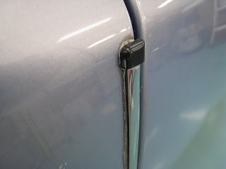 このお車の場合、、、1)塗装面のWAXが汚れを含んで艶を鈍らせている(薄茶色の膜がかかったよう) 2)各部にWAXがこびり付きカチカチに固まってしまっている の2点が大きな問題 先ずは磨きの前にカチカチに固まりへばりついているWAXの除去から始めますが、これがまた大変 磨きよりもこの作業に時間を費やすこともしばしばです |