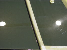 ![]() センターのマスキングから左が磨き後 |
