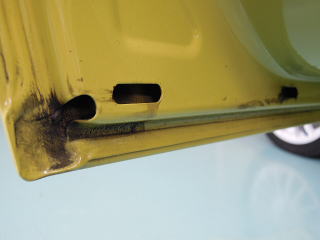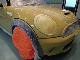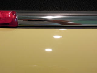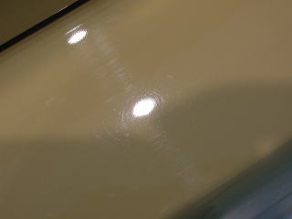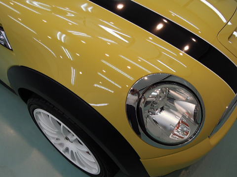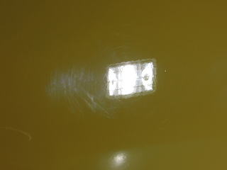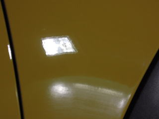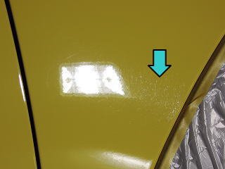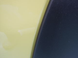 ![]() 先ずは洗車し、ドア内側の油汚れなどを手作業で徹底的にきれいにしてからマスキングを行います 塗装の状態は、黄色の塗装では目立ちにくいのですが よく観察すると軽度の洗車傷に細かなシャンプー染みが全体に見受けられます |