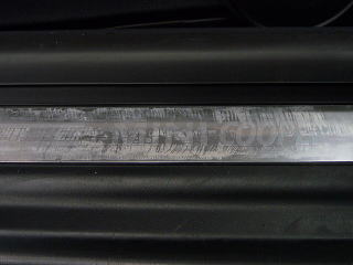 ![]() 時間が経ち固着した保護フィルムの糊跡がクッキリの ステップ部のキックプレート 洗っただけでは落ちません |