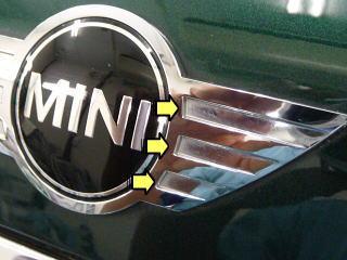 ![]() 最後にミニの特徴でもある、 車全体(フェンダー・前後バンパー下・サイドステップ下) をぐる〜り取りまく無地の樹脂モール |