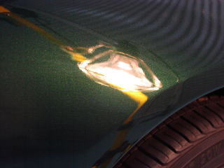 ![]() 左Fフェンダー上部 この洗車傷では見せ場が台無しです |