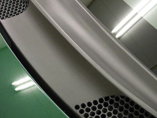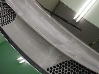 ![]() フロントウィンド下の無塗装の樹脂 |