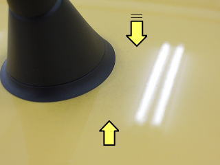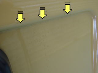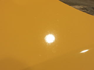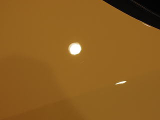 ![]() ボンネットの雨ジミ ポロのソリッド色はクリアーがないタイプですので 軽い雨ジミでも意外としつこいです |