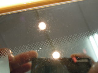 ![]() 前回撥水加工をしなかったFガラスのみ雨ジミが付着 |