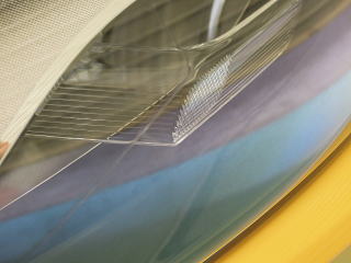 ![]() よく見るとヘッドライトにも洗車では落ちない雨ジミが付着 |
