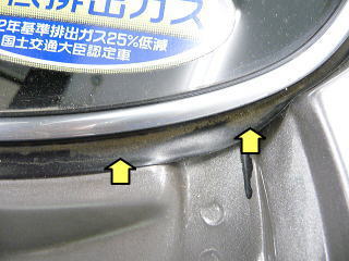 ![]() リアガラスまわりゴム枠にたまったドロ汚れ |