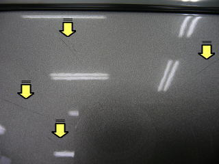 ![]() Bピラーのひどい洗車傷 |