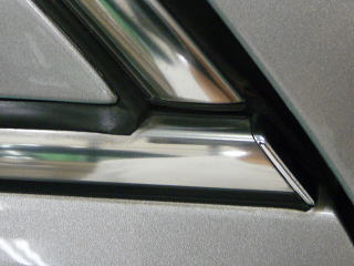 ![]() Aピラー付け根の固着した水あか汚れ |