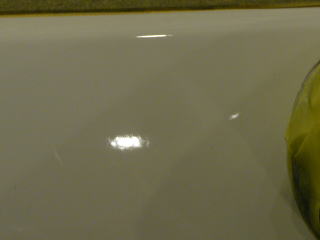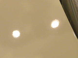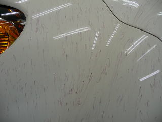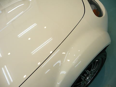 細部のよごれ落とし&下地磨き完了でガサガサだった肌が、つるつる、ピカピカの白い肌へと復活! この後、、再洗車、徹底した水切り&乾燥、 室内温度20度以上でのボディコーティング、室内清掃、細部処理と続きます コーティング剤と施工環境について |