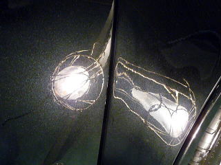 ![]() ボンネット 洗車傷に加え、全体的にオーロラがゆらゆら |