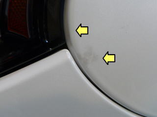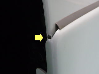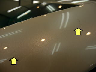 ![]() フロントナンバー横 5センチほどのにょろにょろっとした深い引っかき傷 |