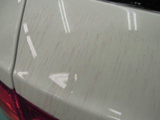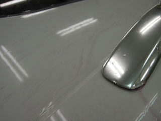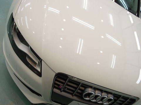鉄粉除去、下地磨き完了です 雨染み、洗車傷除去でまっ白しろ、艶やかです! この後、、再洗車、徹底した水切り&乾燥、 室内温度20度以上でのボディコーティング、 窓ガラス下地磨き&超耐久撥水加工、ホイールコート、室内清掃、細部処理と続きます 下地作り・磨きについて コーティング剤と施工環境について |