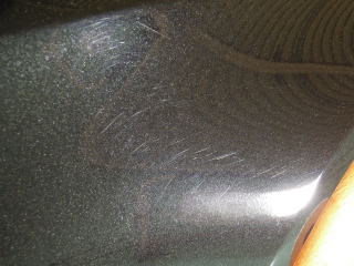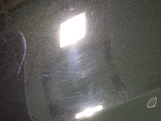 ![]() ボンネット 斜め方向に強めの洗車キズ |