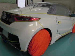 | ホンダ S660のガラスコーティング施工例 ガラスコーティング コーティング カーコーティング 本日のご入庫は、ホンダ S660です ここのところミニバンやSUV系のイメージが強くなってしまったホンダのラインナップにあって 久しぶりに待ちに待った従来からのスポーツのホンダをイメージさせる車ということで発売前から大人気のS660 660cc 直3ターボエンジンは従来からの改良型となり64ps 10.6kgf・mを発生 これをリアに横置きのミッドシップとした本格的なスポーツレイアウトを採用 また今回のご入庫車は足回りや吸排気系、専用エアロボディパネルなど 多岐にわたるモディファイがすでになされた注目度の高い一台となっています ![]() フロントにあるユーティリティボックスには ルーフから外したロールトップが収まるように設計されています ![]() ![]() ![]() ![]() 塗装につきましては、 エアロタイプの物に換装された両リアフェンダーの磨きキズが気になりますが その他は特に大きな問題はなさそうです きちんとマスキング後に下地加工に入ります ![]() ホンダ S660のガラスコーティング施工例 ガラスコーティング コーティング カーコーティング |