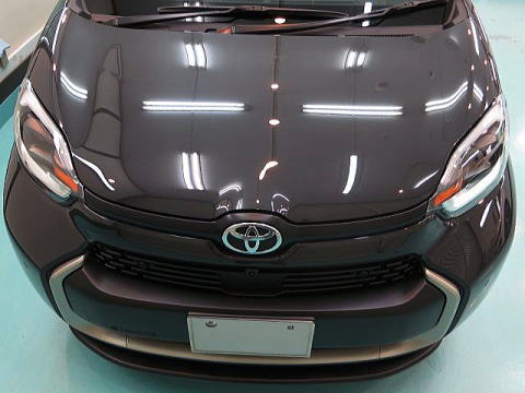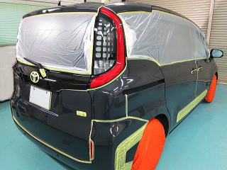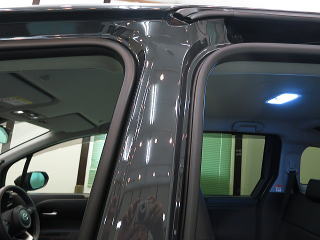 窓ガラス下地磨き&撥水加工、黒色未塗装部専用コート、細部処理と続きます