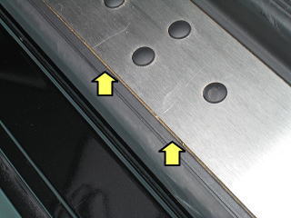 ![]() スカッフプレートまわりのすき間に入り込んだほこり 乗り降りするときに毎回気になるかも? |