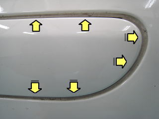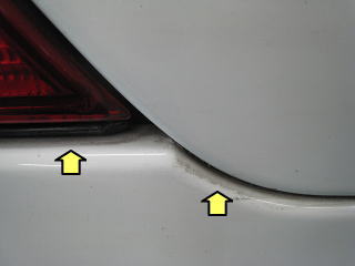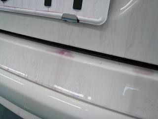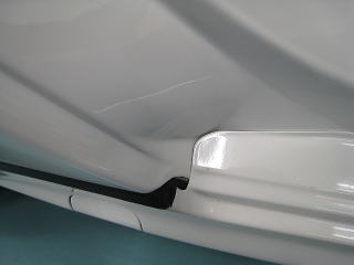 ![]() ボンネットの傷 日常において、白のボディーは傷を認識しにくいため ついついごしごしとこすってしまいがち *白熱灯下で撮影すると褐色に写ってしまいます* |