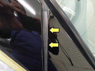 ![]() コンパウンドがこすり付いたAピラー下方のすき間のゴム部 おそらく、ゴム部をマスキングせずに磨いたのだと思います |
