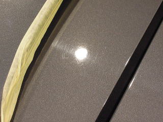 ![]() 左リアフェンダーとドアのすき間 コンパウンドが付着 |
