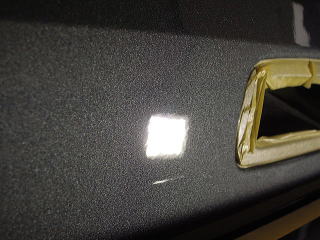 ![]() 左リアフェンダーとバンパーのすき間 コンパウンドが付着 |