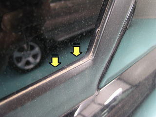 ![]() 窓ガラスの際にたまった土ぼこり 通常の洗車では完全に落ちません |