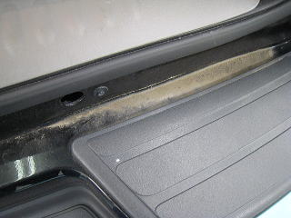 ![]() リアハッチのステップ部左側 この部分は水の行き場が無いので困りもの |