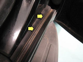 ![]() Rドア内側の汚れ トレブレはどの個体も矢印部分に ウェザーストップが付いているにもかかわらずなぜか 内側にほこりや水分が入る込んでしまいます |
