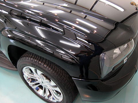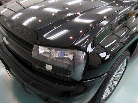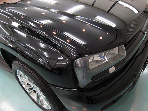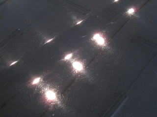![]() ボンネットの雨染み&洗車傷 わおうぅっ! 入庫時、全体的に土ぼこりがひどかったので2回洗車しました ![]() 洗車傷と雨染みによって失われていた本来のソリッドブラックが復活っ!! |