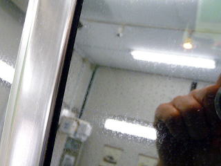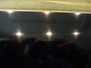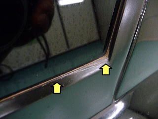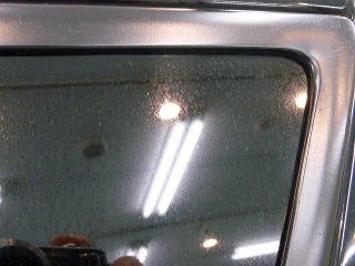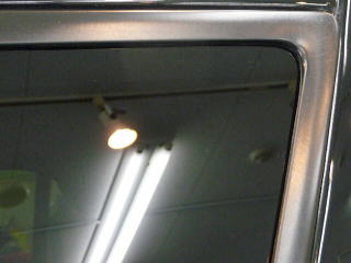 ![]() 洗車では落ちきらない窓ガラス下部の土埃 |