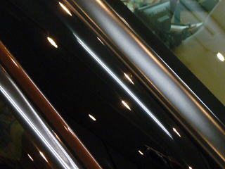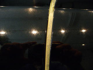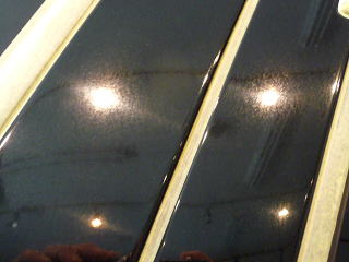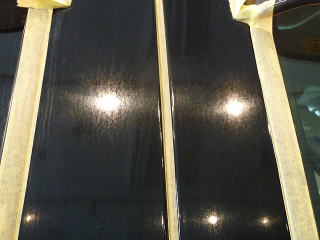 塗装に関しましては、洗車傷もありますが、それより何より、やはりシャンプー染みによる隙間なく付着した雨染みが問題 とにかく、サイドのドアからピラー部までビッシリですのでこれを何とかしなければなりません ボンネットなどの広く平らな面そ磨くのは簡単ですが、細くてモール類にはさまれた各ピラー部を 丹念に磨き出す事の方が手間と時間と根気が必要となります パッと目の行くのは広いボンネットですが、全体の仕上がりの良さ、カッチリ感を表現するには 細かな部分で手を抜くことはできません |
