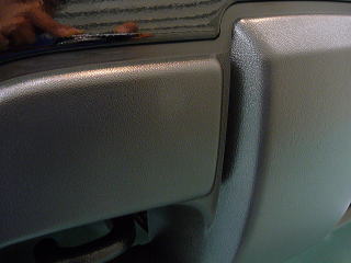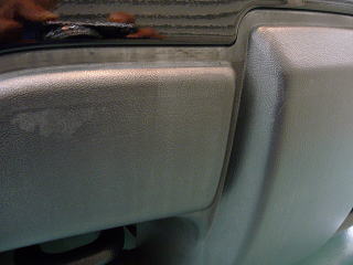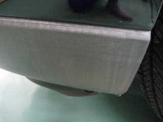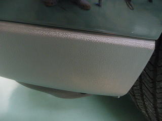 ![]() 無地樹脂部(バンパー下部) 使用されていたWAXかコーティング剤、あるいは シャンプーが流れた跡がムラとなり残っています |