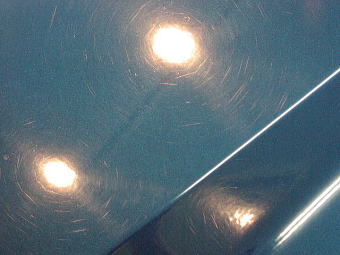 ![]() ボディの洗車キズはこんな感じです。 このキズが増えてくると全体が白っぽく感じる ようになってしまうんですね。 この塗装はとてもデリケートですので それに対してこの程度でしたらまだまだ軽症です。 |