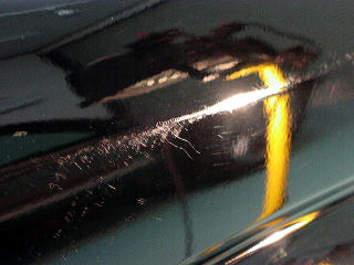 ![]() 右リアフェンダー上のプレスライン下 何のキズでしょうか? 不思議な付き方です |