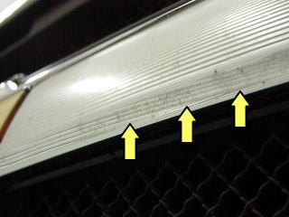 ![]() シボレーの象徴、ボータイの入ったFグリル中央のメッキ部 下部の汚れは下からのぞかないと見逃しがち |