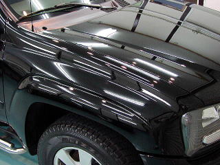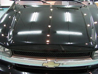 ボンネットの塗装の状態です(洗車後3枚) 昨年の施工後、丸一年が経過し、かつ、オーナーさん曰く 「冬場はドロだらけ状態なんですよ」と言われるわりにはかなり良好な状態ではないでしょうか。 多少の雨染みはありますが、洗車キズは少ないです。 このソリ黒塗装は、非常に柔らかくデリケートですのでここまで良い状態に保つには オーナーさんの日常のメンテのご苦労を強く感じます。 ちょっとした気ずかいでも一年経つと大きな差となって出てくるのですよね! ポツポツと残っている小さな点は、飛び石キズです。 |