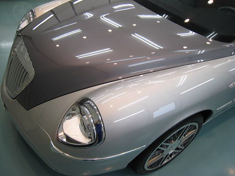 この後、再洗車、徹底した水切り乾燥、ボディコーティング〜湿度調整室内での最低4時間の乾燥 窓ガラス撥水加工、ホイールコーティング、室内清掃、細部処理と続きます |