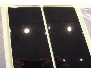 ご入庫の際には、ボディも窓ガラスも雨染みによって年式以上のヤレ感が漂っていましたが、 施工後はともにスッキリ!、、窓ガラスは透明に、ボディは深みのある艶に生まれ変わりました 黒はメンテに大変な気を使いますが、それだけにきれいになった時の感動も大きいです これからもどうか大切になさってくださいませ ご利用誠にありがとうございます |