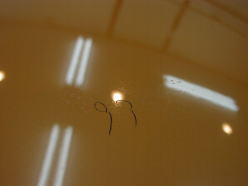 ![]() こちらはルーフの雨シミです やはり分かりずらいかもしれませんが膜厚数値周辺のボツボツがそれです。 |