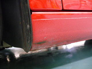 ![]() サイドスカート下の泥&ピッチ汚れ 飛び石傷防止の凸凹した塗装のため落ちにくいです |