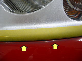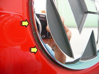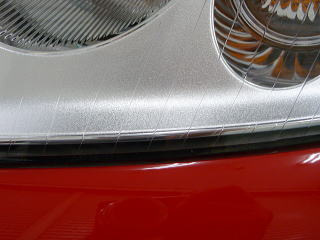 ![]() ヘッドライト下やパネル各部すき間の水あか汚れ |