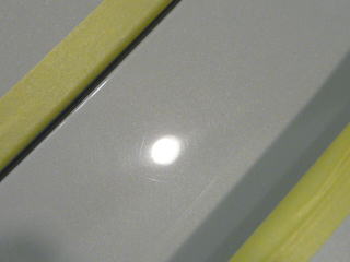![]() さて、、マスキングを施し、仕上げを左右する最も重要な工程である「下地加工」を開始いたします 塗装の状態ですが、新車ですので問題はないかと思いきや、、、 左ドア、左リアフェンダー〜Cピラー、リアウィング、リアウィング取り付けパネルに 機械で磨いた渦巻き状の傷(バフ目)がかなり残っている状態です |