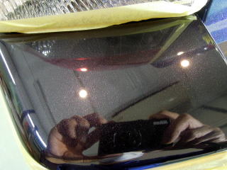 ![]() まずは白く残ったWAXをきれいに除去後(写真) 専用コートいたします(写真は専用コート前) ボディ同様、何につけても下地処理が最も大切です! |